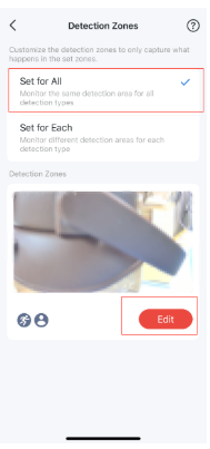 Étape 3 : sélectionnez Définir pour tous et appuyez sur le bouton Modifier pour définir les zones de détection afin de capturer uniquement ce qui se passe dans les zones définies.